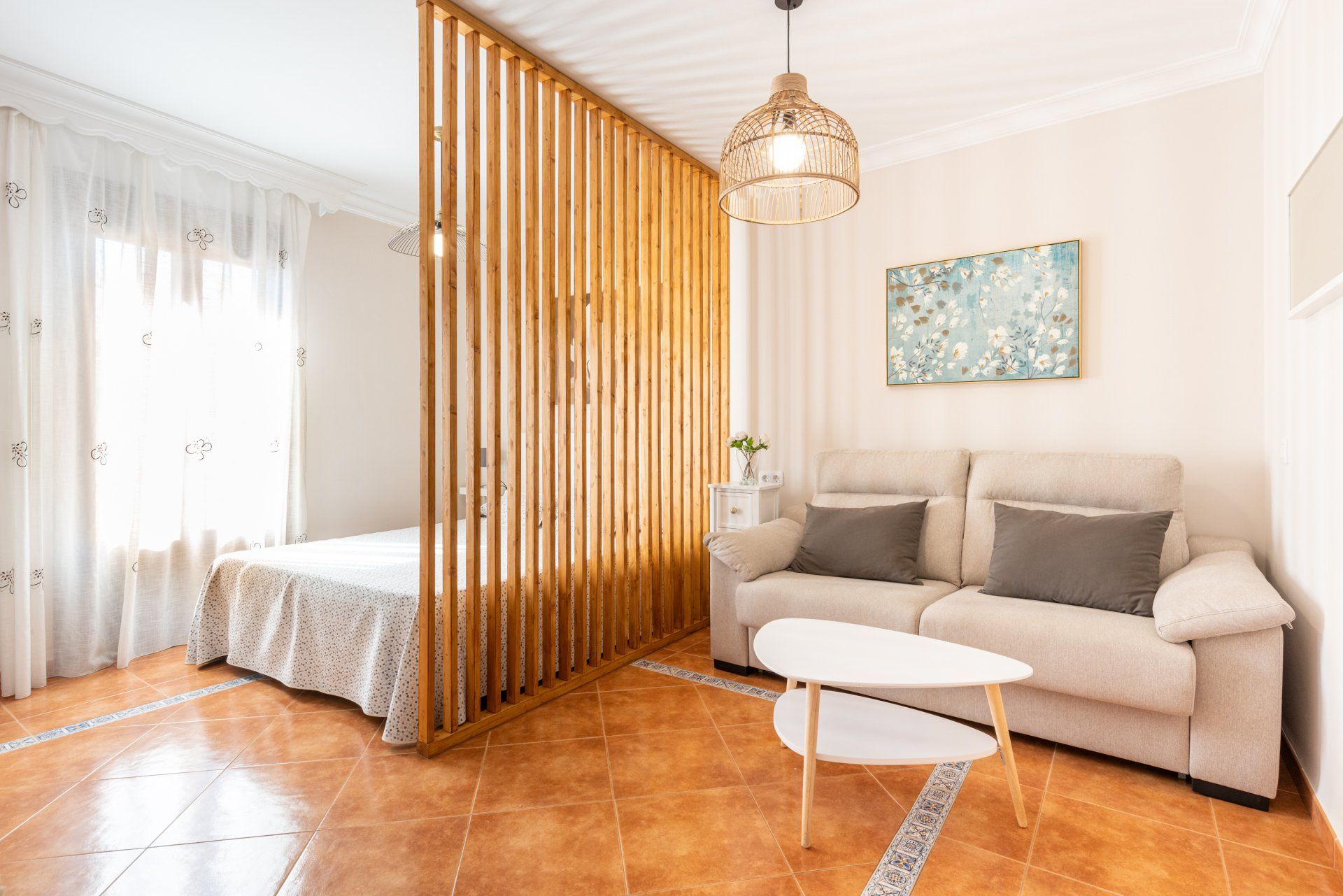 Nuestro Estudio es ideal para pasar unos días en pareja incluso si tienes niños ya que además de la amplia cama de 160x200 dispone de un sofá cama con colchón+topper que lo hace muy cómodo incluso para adultos. Aire acondicionado, Smart TV, cocina completa - comedor, patio interior y baño con ducha.